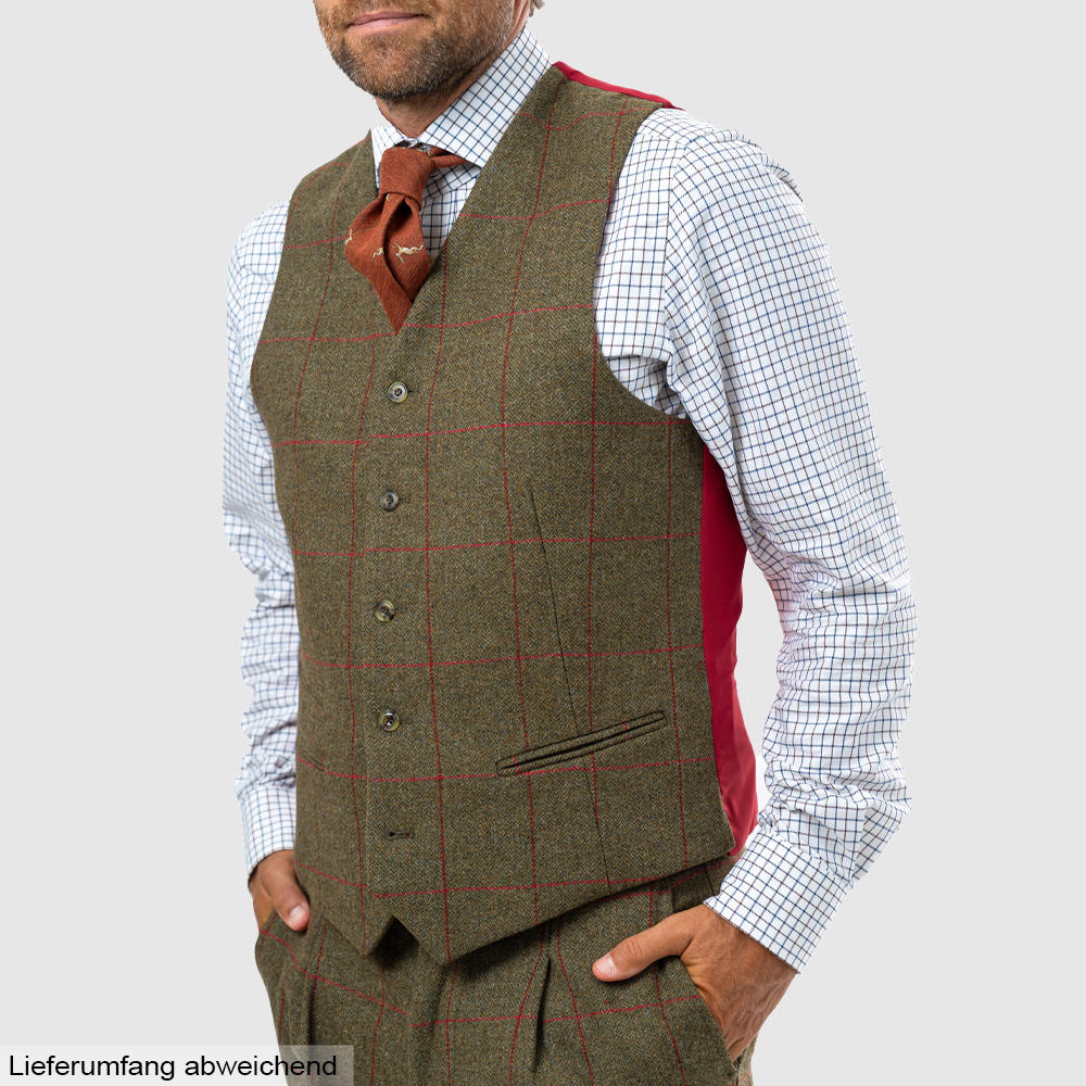 Die Tweed-Weste lässt sich hervorragend mit der passenden Hose und dem Sakko der »Combrook« Serie kombinieren und ergänzt jede klassische Herrengarderobe um ein stilvolles Kleidungsstück mit britischem Charakter.