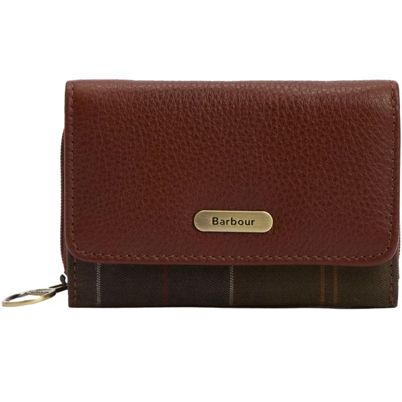 Das markante Messing-Logo auf der Vorderseite rundet das edle Erscheinungsbild ab. Das praktische Tri-Fold-Design bietet zahlreiche Fächer für Karten, Geldscheine und Ausweise sowie ein separates, außenliegendes Reißverschlussfach für Münzen.