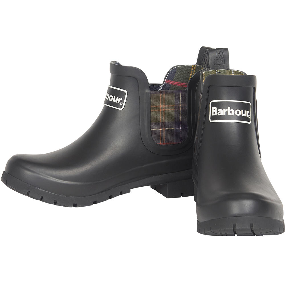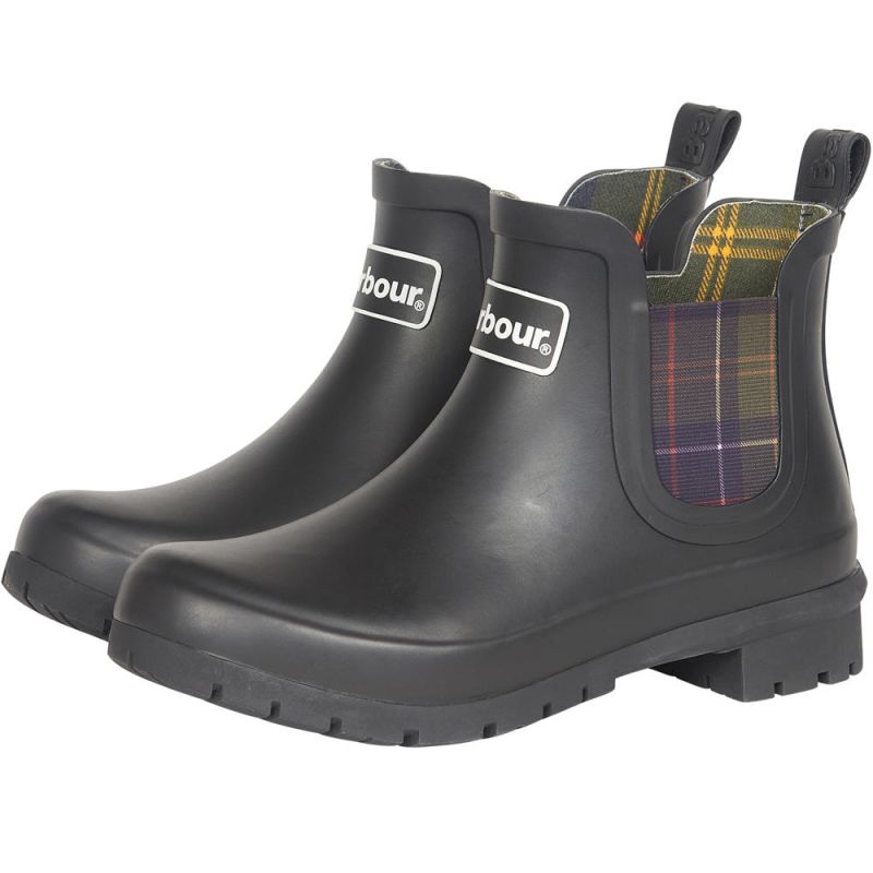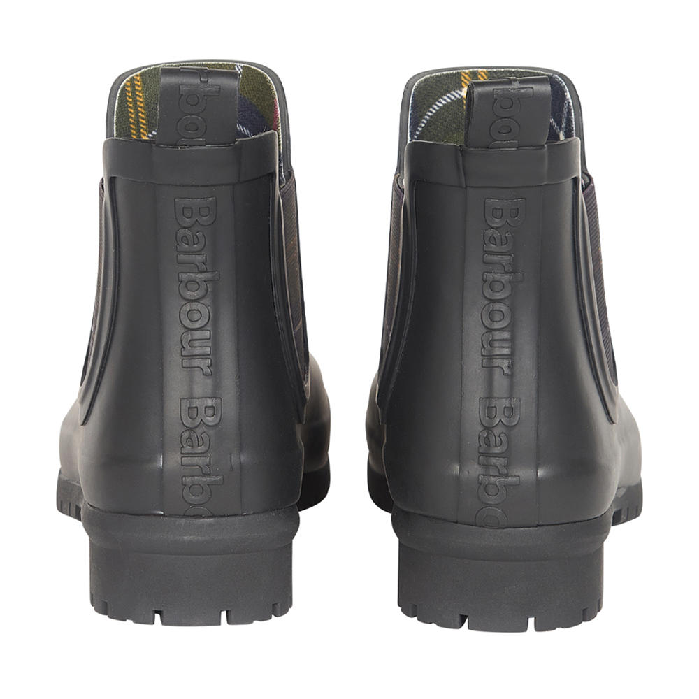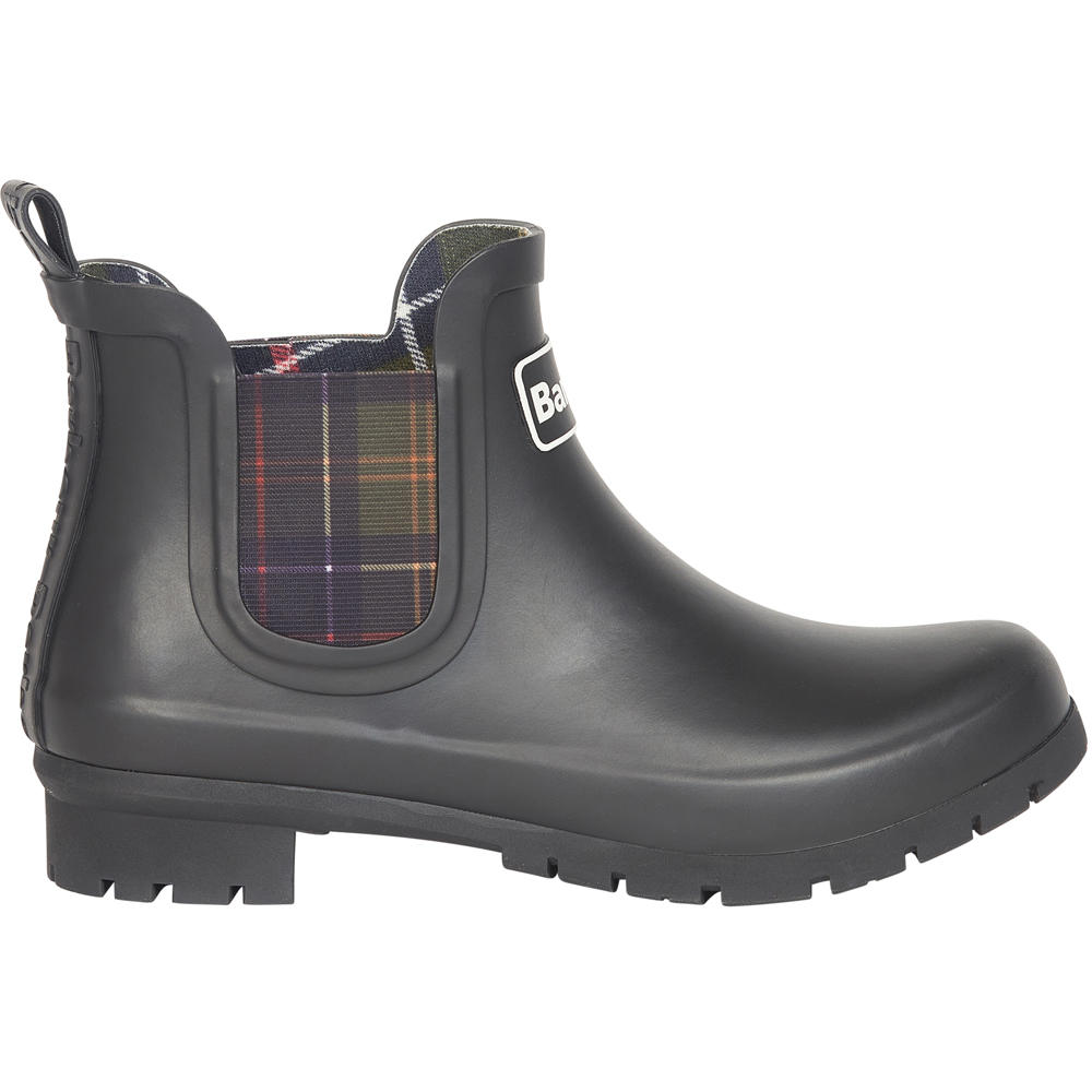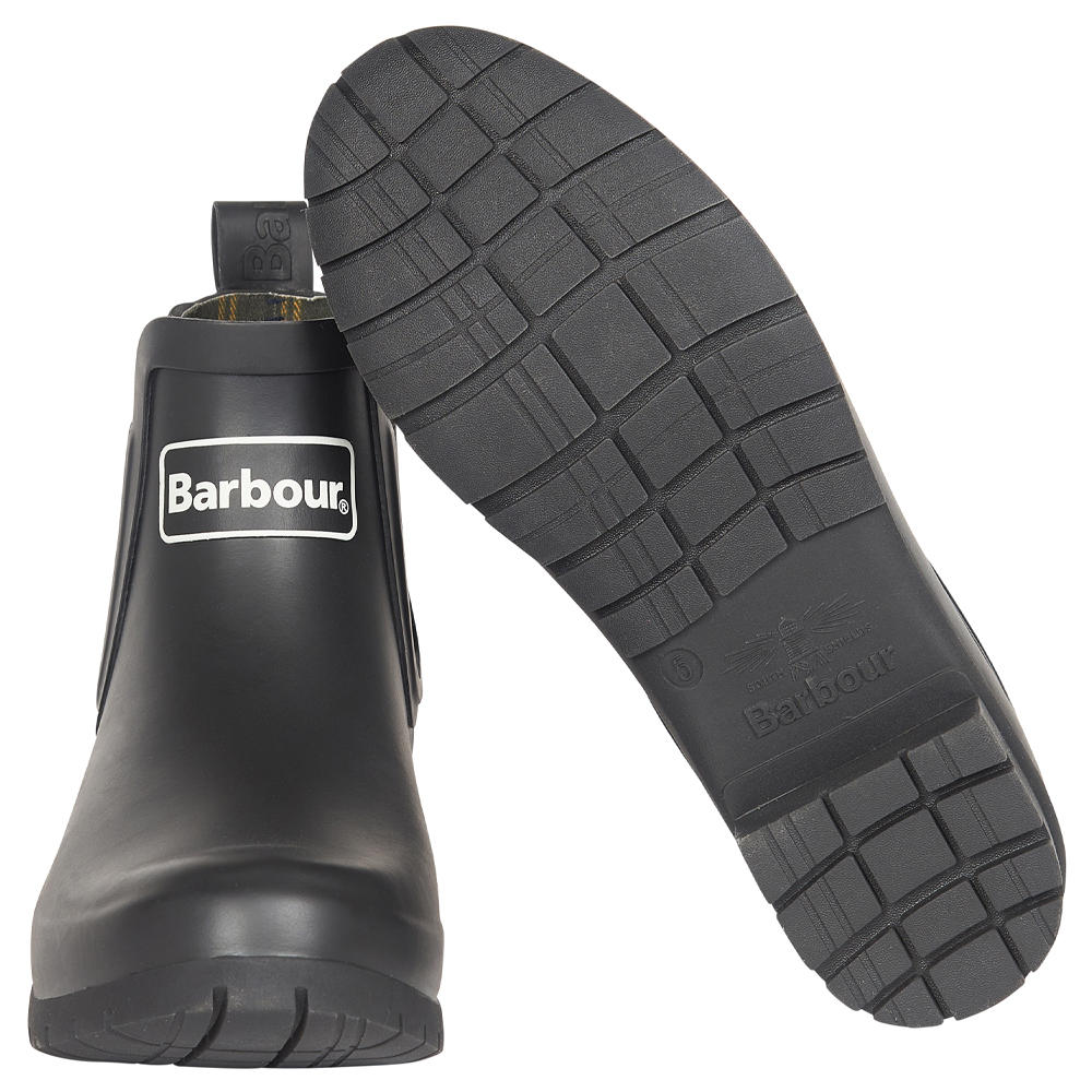 Ein markanter Akzent sind die elastischen Einsätze im charakteristischen Barbour-Tartan-Design, die dem funktionalen Schuh einen unverwechselbaren Look verleihen.