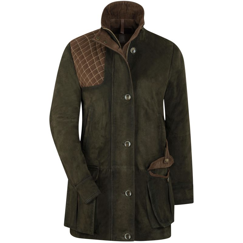 Die Jacke überzeugt mit schießsport-inspirierten Details wie einem gesteppten Schulterpatch, einer Kellerfalte im Rücken für optimale Bewegungsfreiheit und einer verdeckten Reißverschlusstasche unter der Knopfleiste. Zwei aufgesetzte Blasebalgtaschen bieten viel Stauraum für Patronen und andere Jagdutensilien. Druckknopf-Riegel zur Befestigung der Taschenpatten ermöglichen einen schnellen Zugriff auf die Patronen und unterstreichen die hohe Funktionalität der Jacke.