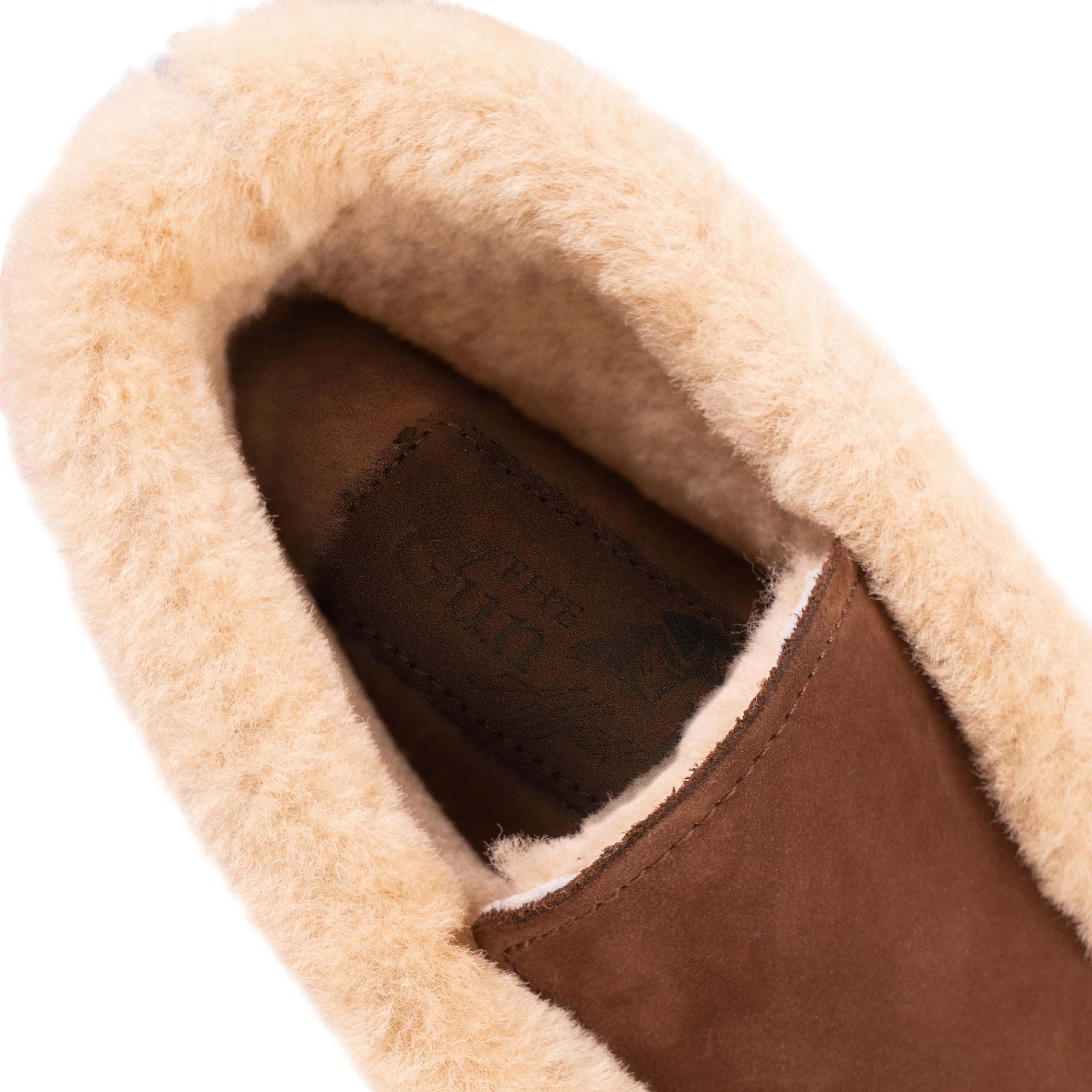 - Material Obermaterial: Veloursleder, Futter: Lammfell wie gewachsen, Sohle: Naturkautschuk