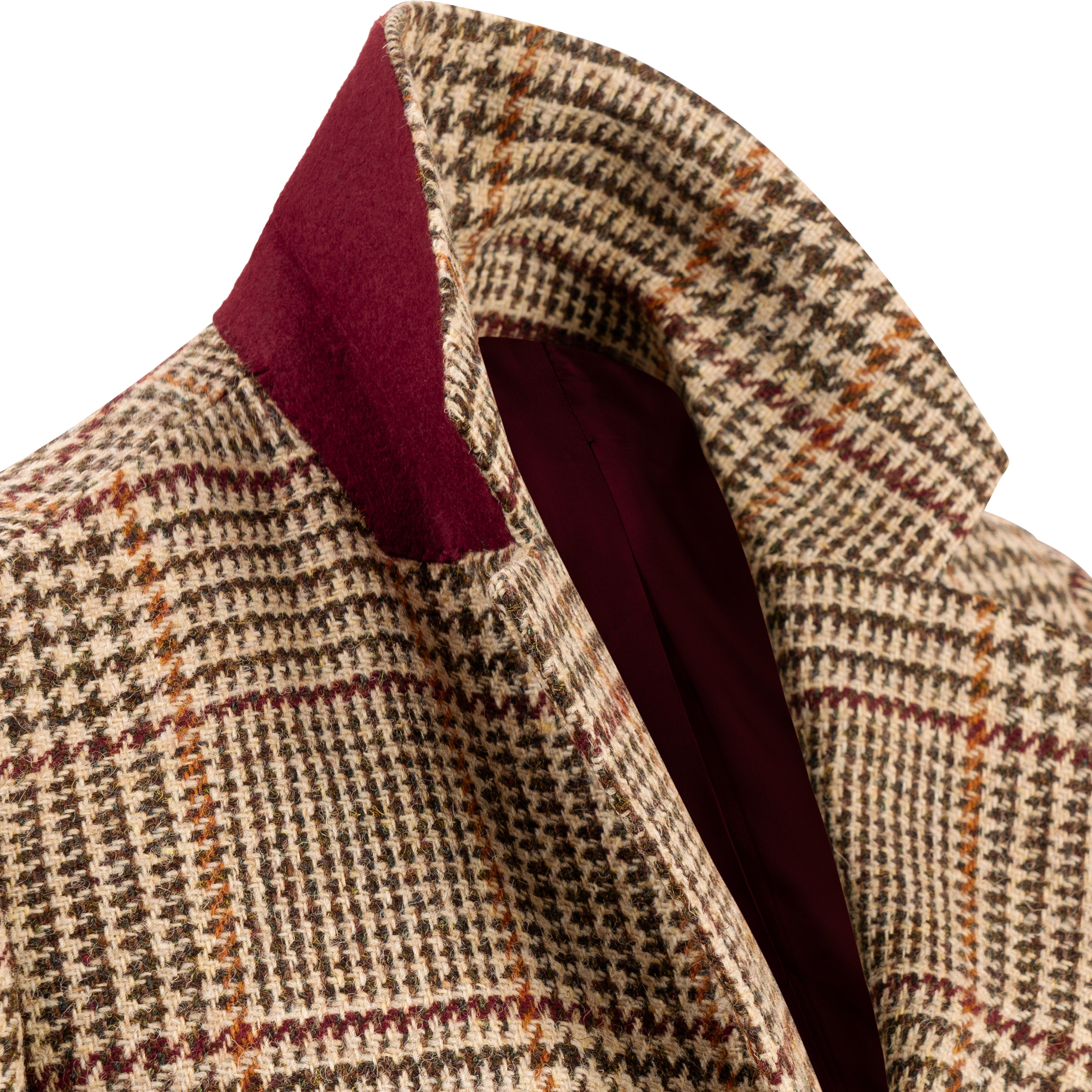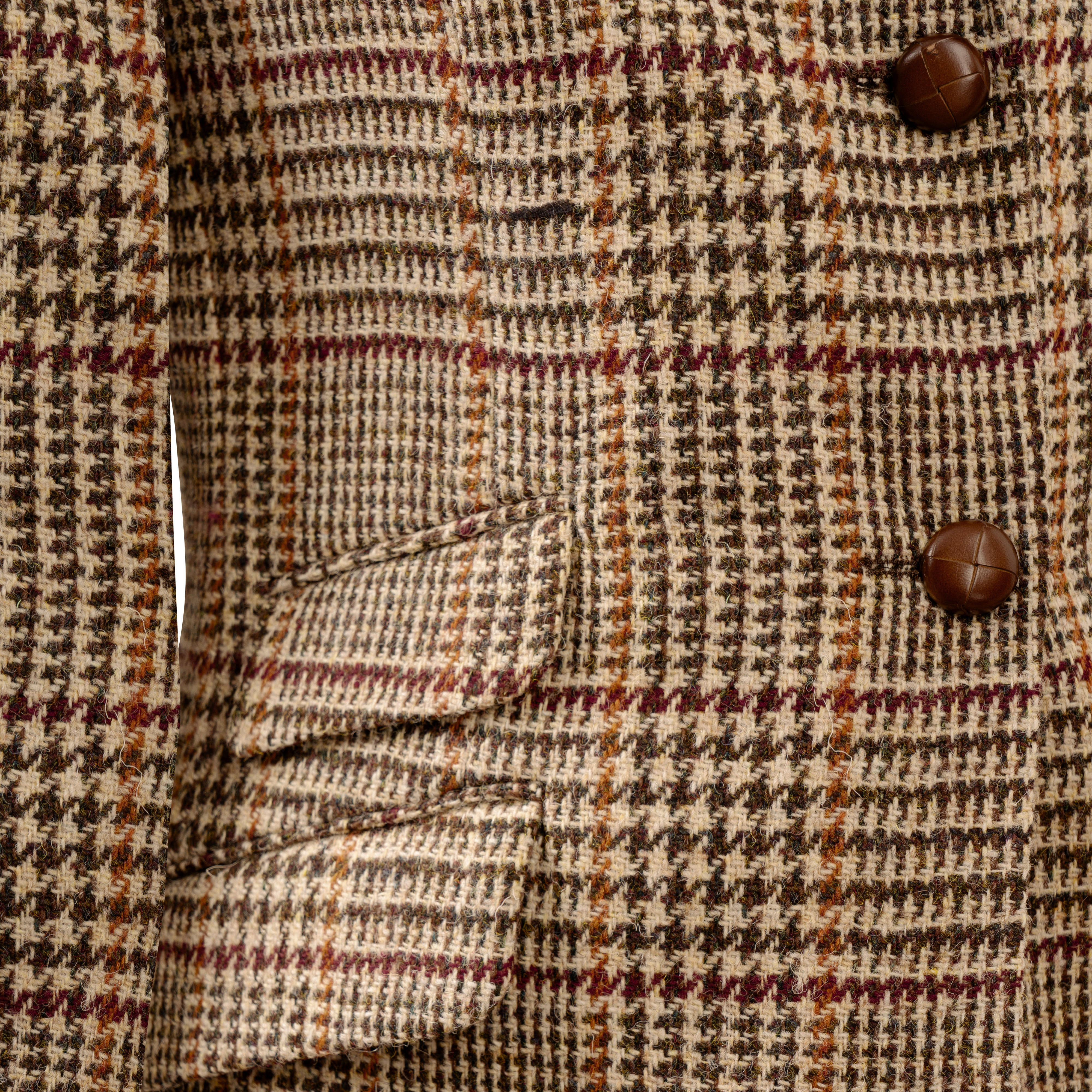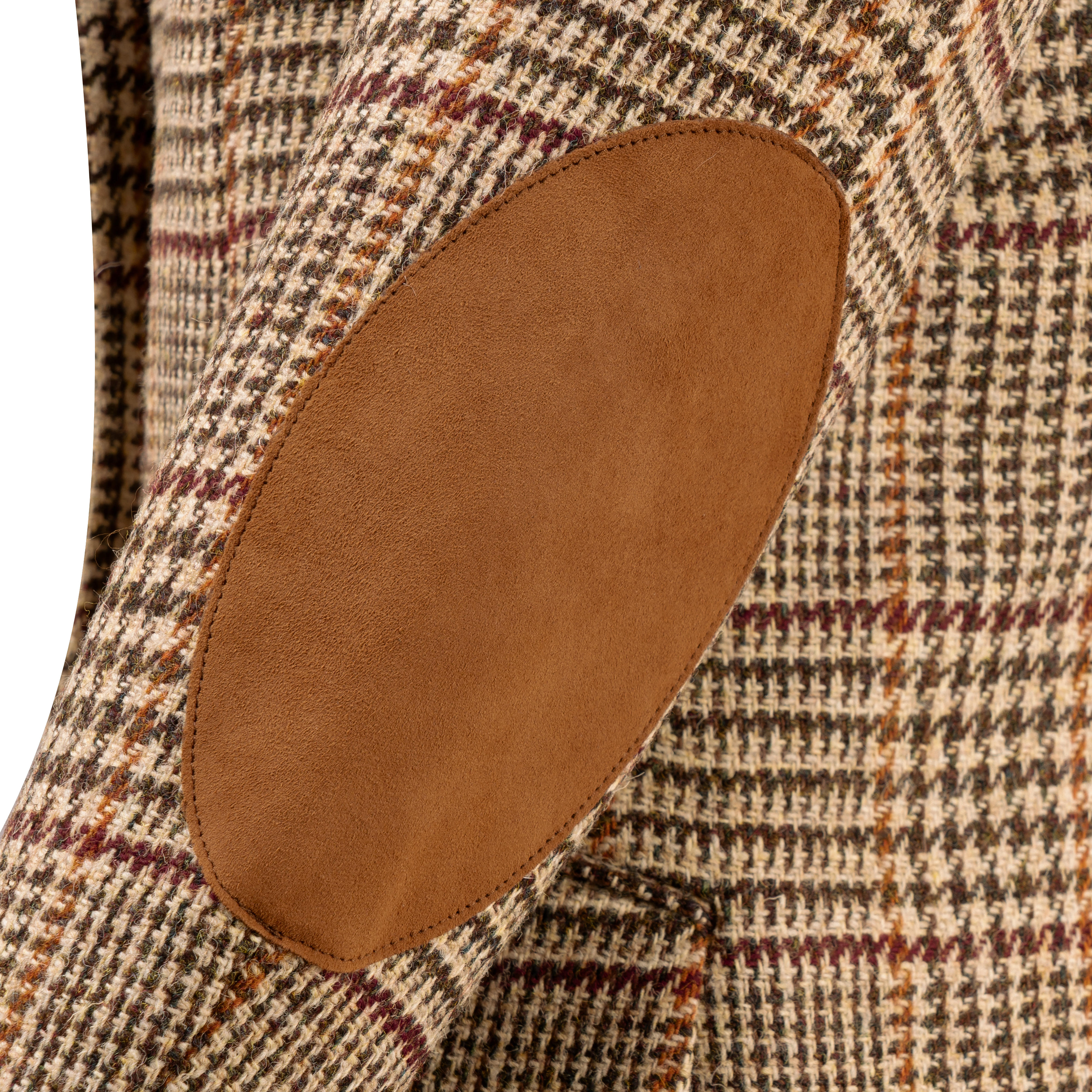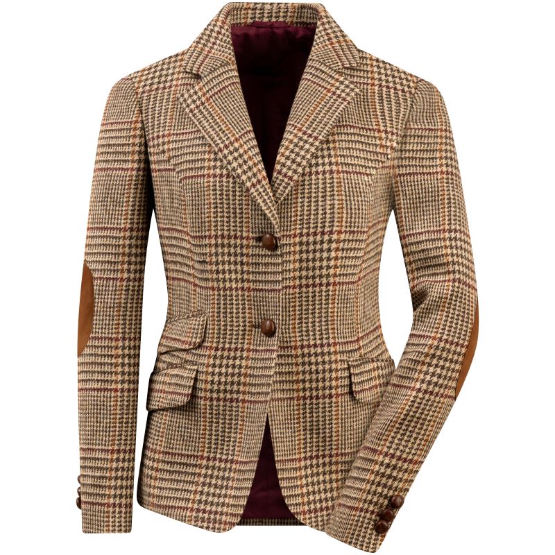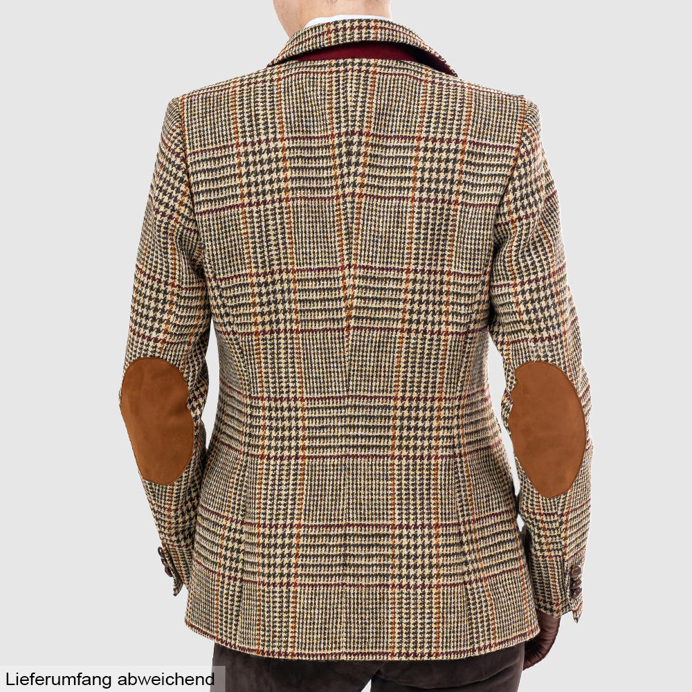 Der sportlich-elegante Blazer in klassischer Zwei-Knopf-Form verfügt über zwei schräg verlaufende Pattentaschen sowie eine zusätzliche Billett-Tasche. Feinste Ziegenvelours-Patches an den Ellenbogen und geflochtene Lederknöpfe ergänzen das authentische Design auf raffinierte Weise. Das zinnoberrote Viskose-Duchesse-Innenfutter und die figurbetonenden Abnäher unterstreichen die feminin-elegante Note des Blazers perfekt.