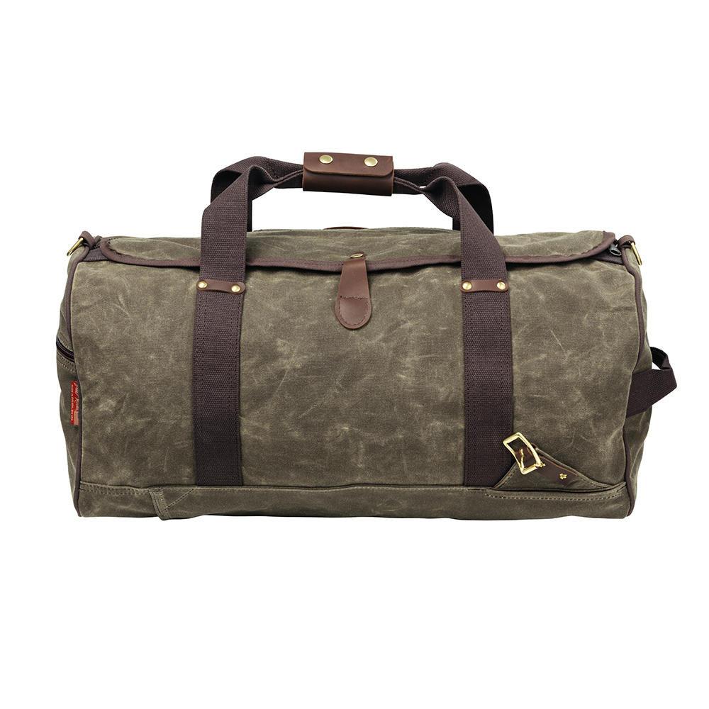 | Material: | 18 oz. waxed canvas, premium leather, solid brass hardware |
