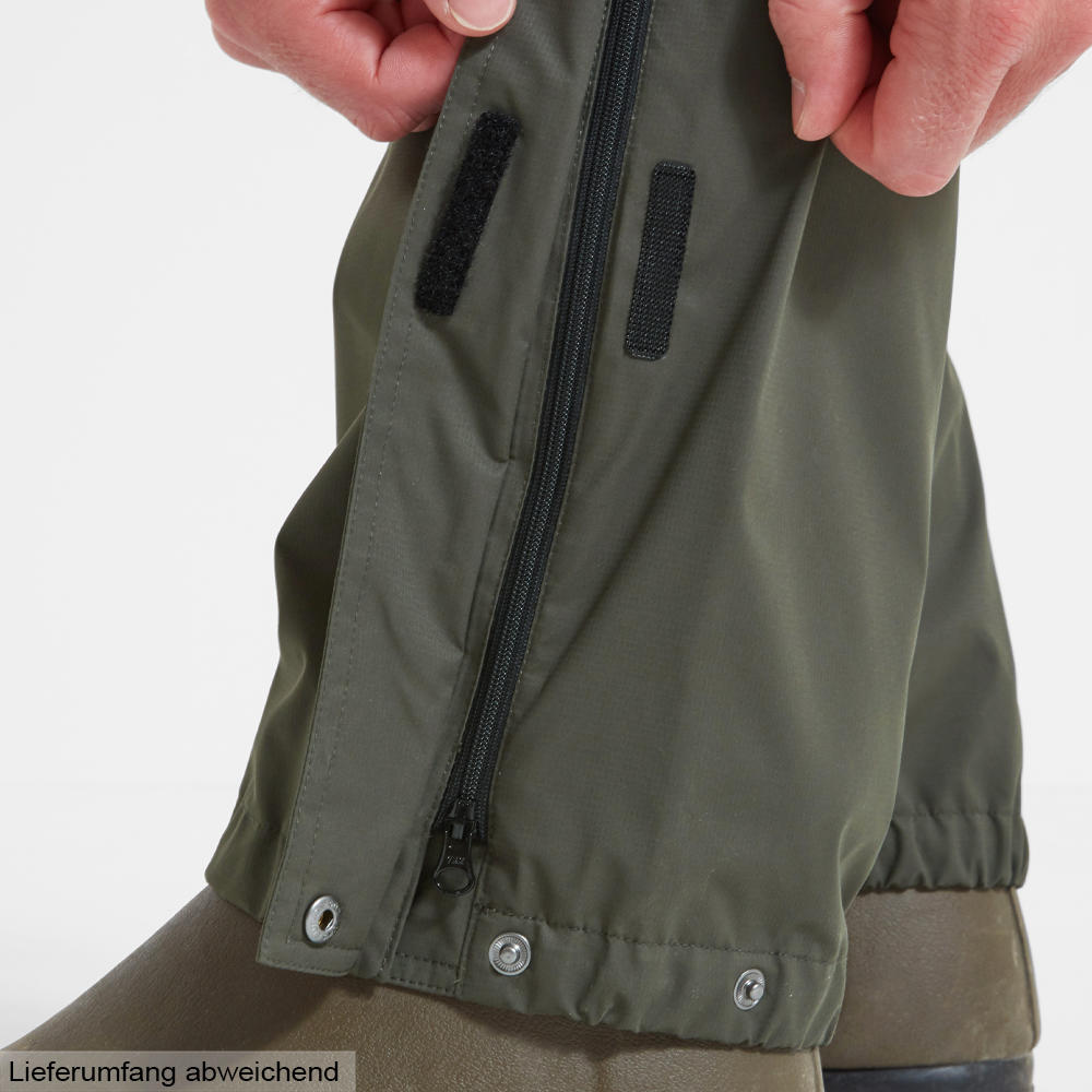 The Saxby II overtrousers feature a thoughtful construction: an elasticated waistband and adjustable press-stud hems, along with full-length side zips, allow for easy on and off over boots, providing optimal comfort. The reinforced knees provide additional freedom of movement and flexibility, which is particularly beneficial for hunting and other intensive outdoor activities.