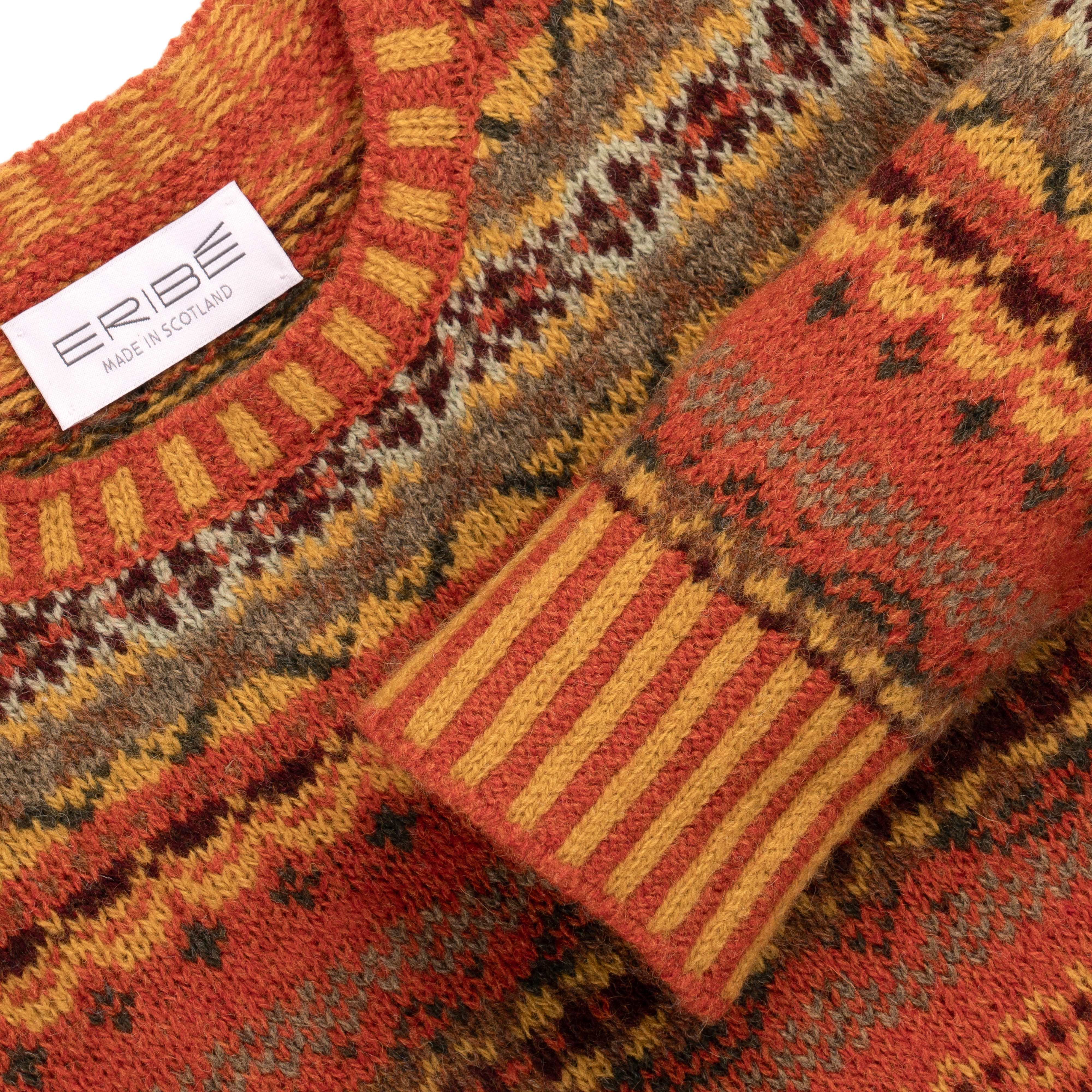 Gefertigt aus reiner, besonders weicher Shetlandwolle, vereint er traditionelle Strickkunst mit zeitloser Ästhetik. Die Wolle stammt aus Schottland und überzeugt durch ihre angenehme Haptik, natürliche Wärmeeigenschaften und eine langlebige Qualität. Charakteristische Details wie die glatt rechts gestrickten Abschlüsse an Halsausschnitt, Ärmeln und Saum unterstreichen die hochwertige Verarbeitung und die feine Handarbeit der Strickspezialistin Rosy Eribé.