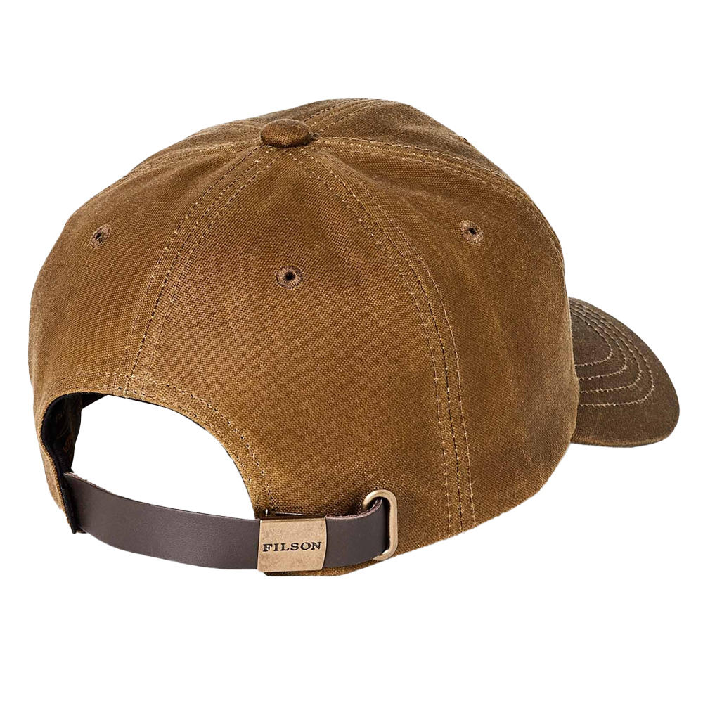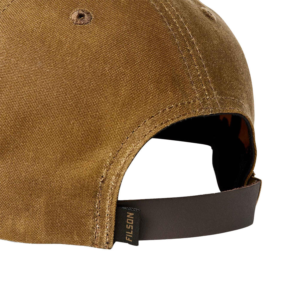 Der verstellbare Lederriemen mit robuster Messingschließe ermöglicht eine präzise Anpassung an die Kopfgröße, während der vorgeformte 3-Inch-Schirm zuverlässigen Schutz vor Sonne und Regen bietet. Abgerundet wird das sportlich-funktionale Design durch ein gesticktes Filson-Logo, das der Cap eine authentische Marken-Note verleiht.