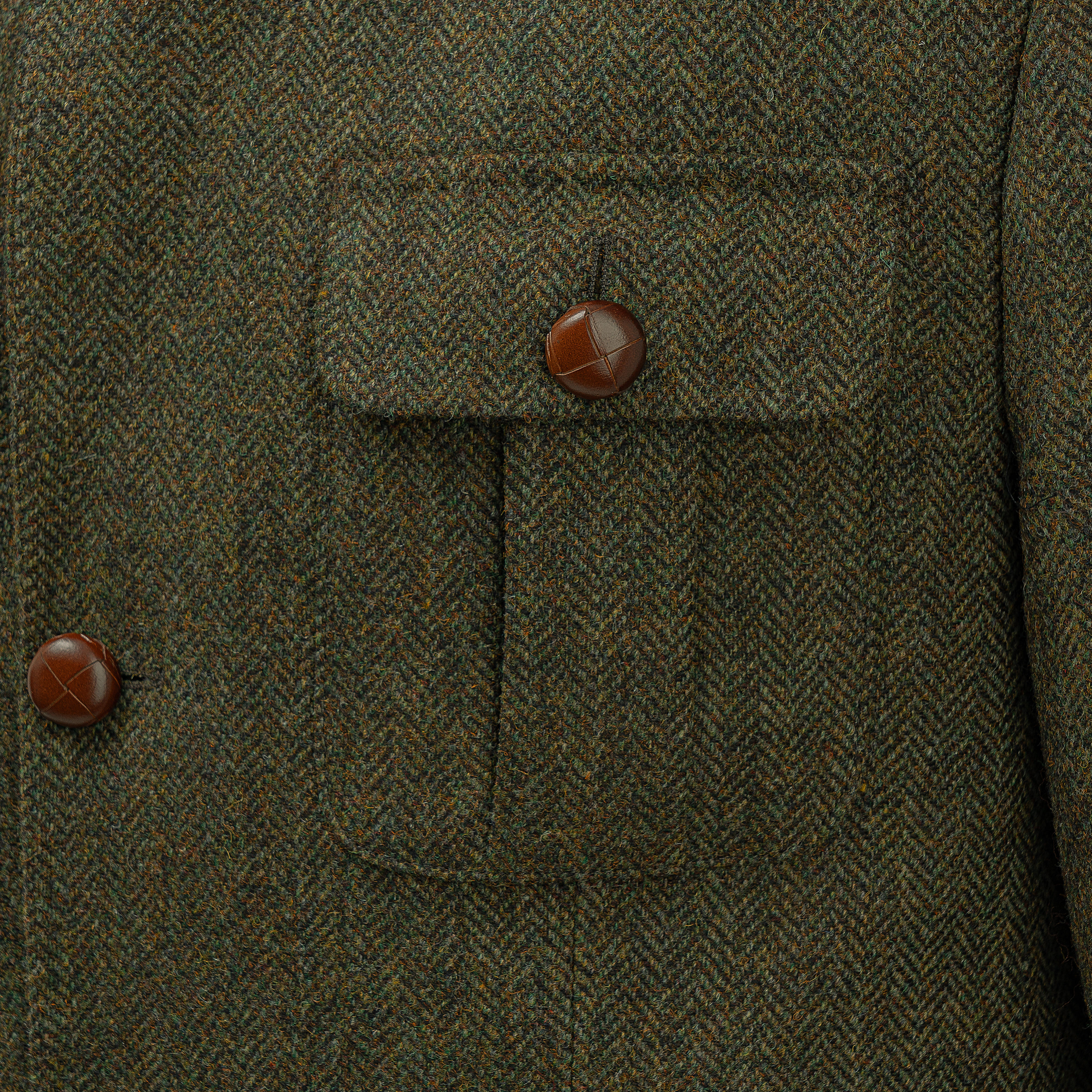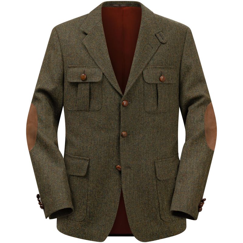 Das Sakko verbindet gekonnt britische Tradition mit zeitgemäßer Ästhetik. Der markant maskuline Stil der Jacke sorgt für einen selbstbewussten Auftritt und wird durch das dezente Fischgrat-Muster geschmackvoll abgerundet.