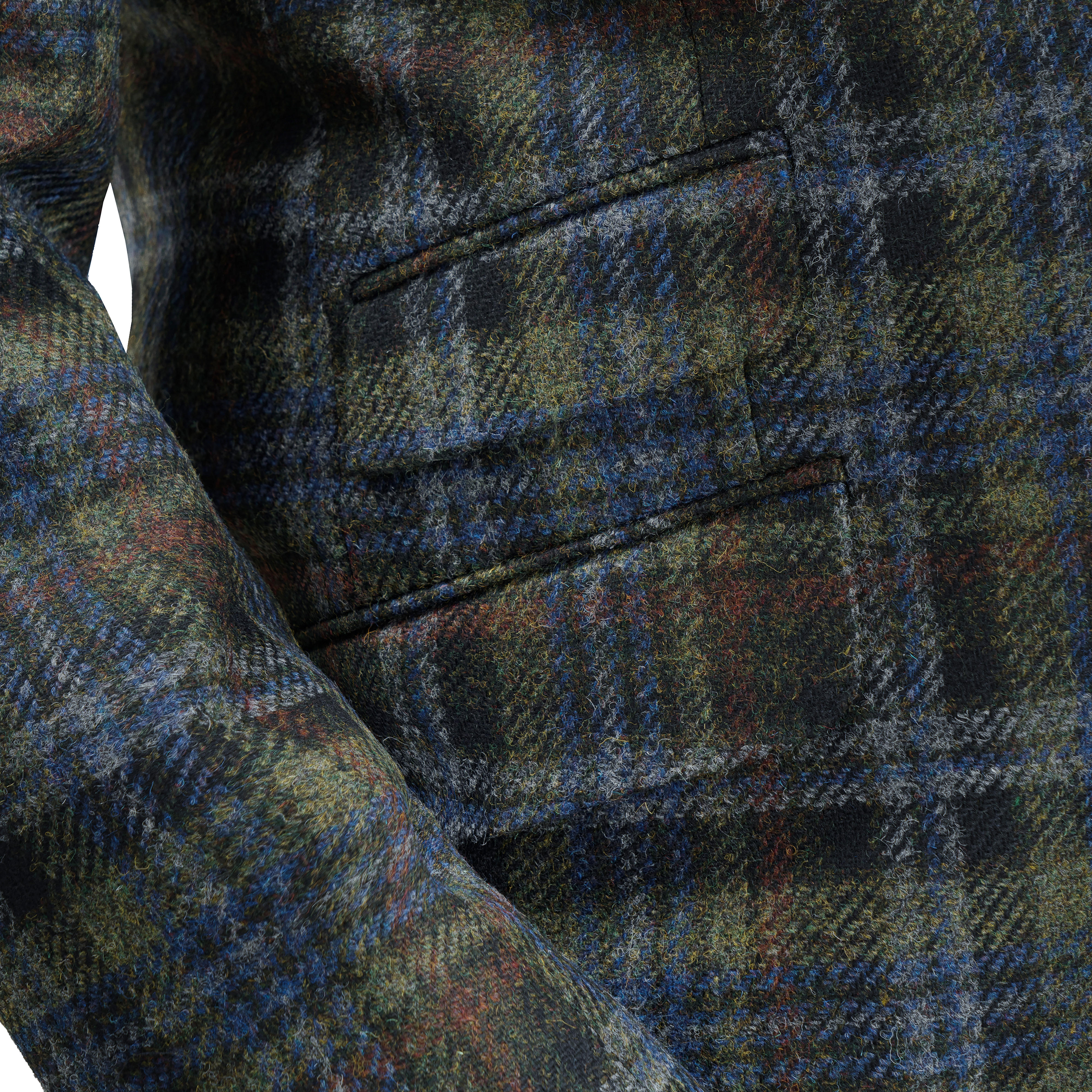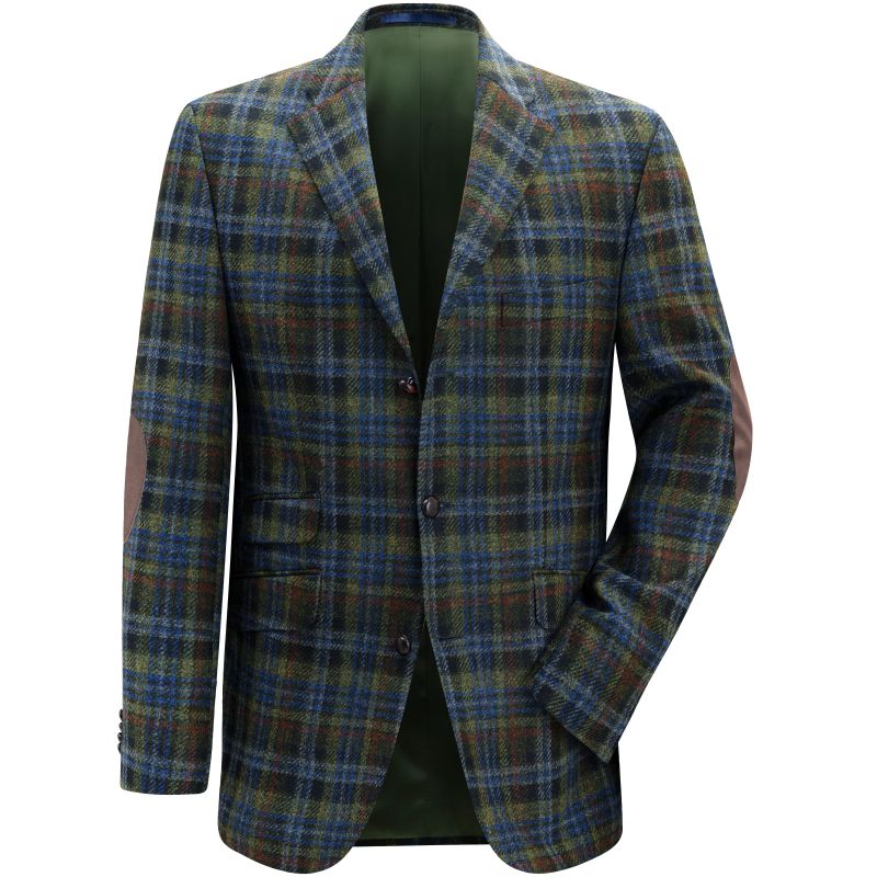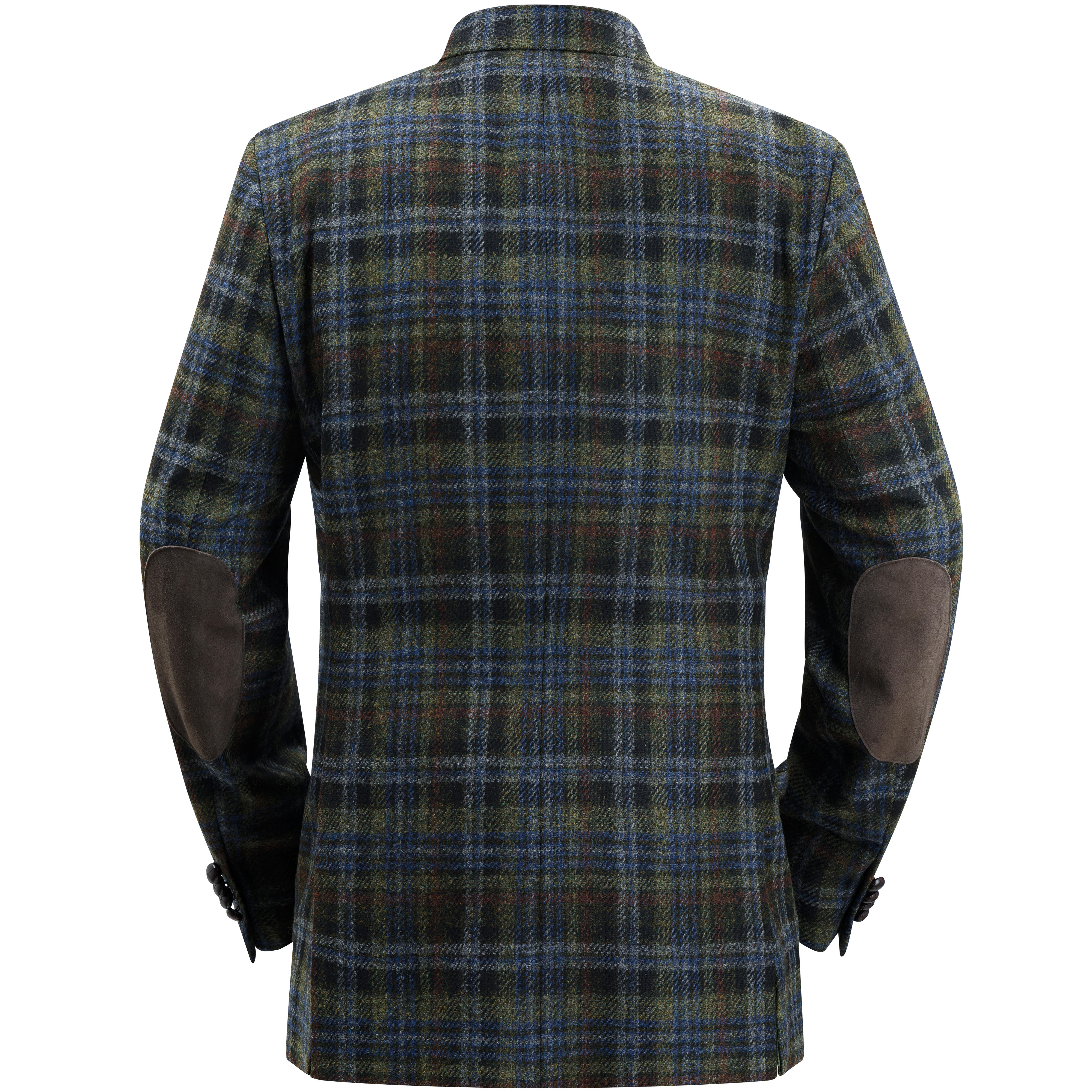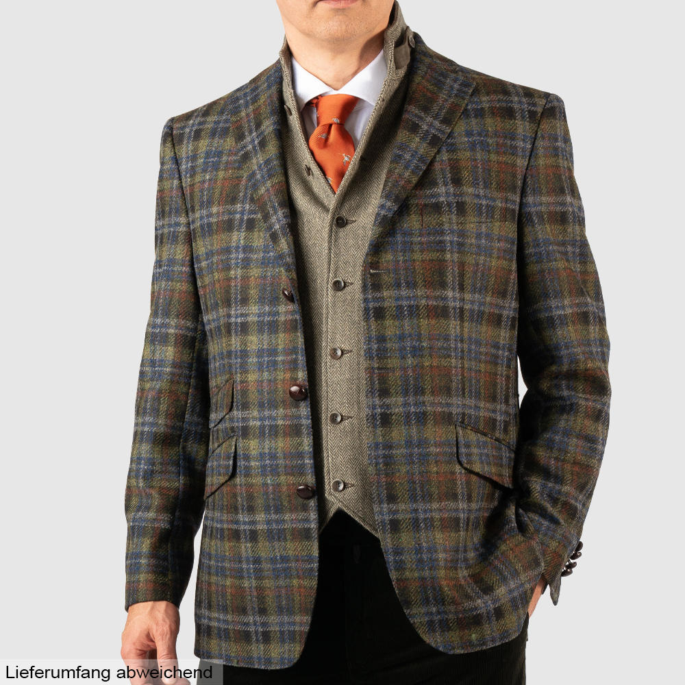Das sportive Sakko ist erstklassig gefertigt und verfügt über eine 3-Knopf-Frontleiste, zwei aufgesetzte Taschen, eine Billetttasche, eine Brusttasche sowie vier praktische Innentaschen. Raffinierte Details, wie die Ellenbogen-Patches aus feinstem Ziegenvelours, die farblich abgesetzte Kragenunterseite, geflochtene Lederknöpfe und das hellgrüne Futter aus Viskose-Duchesse unterstreichen gekonnt das authentische Design.