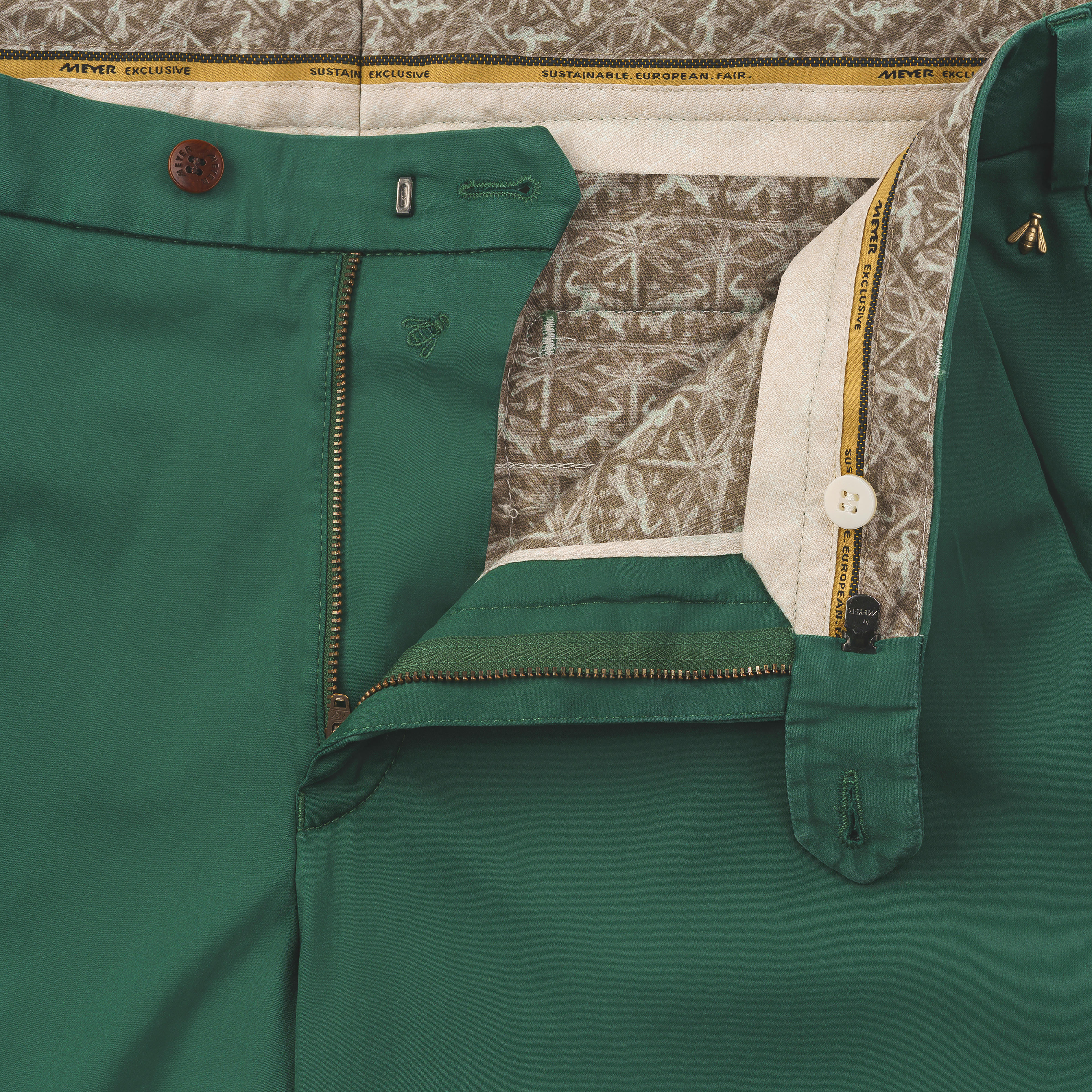 Hautfreundlich und schadstofffrei, hergestellt mit 40 % weniger Wasser, 100 % klimaneutral und nachhaltig in Europa produziert - eine echte MEYER EXCLUSIV Hose.