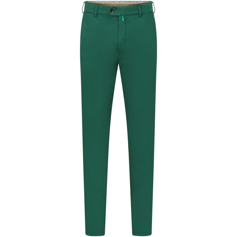 Die schlank geschnittene Herren-Hose ist aus einem Baumwoll-Mix mit Seiden- und Elasthan-Anteil gefertigt, der für ein extra softes und flexibles Tragegefühl sorgt. Keine andere Faser lässt sich hinsichtlich des Tragekomforts mit Seide vergleichen. Der Seiden-Anteil verleiht der Hose eine besonders feine Haptik und einen eleganten Look.