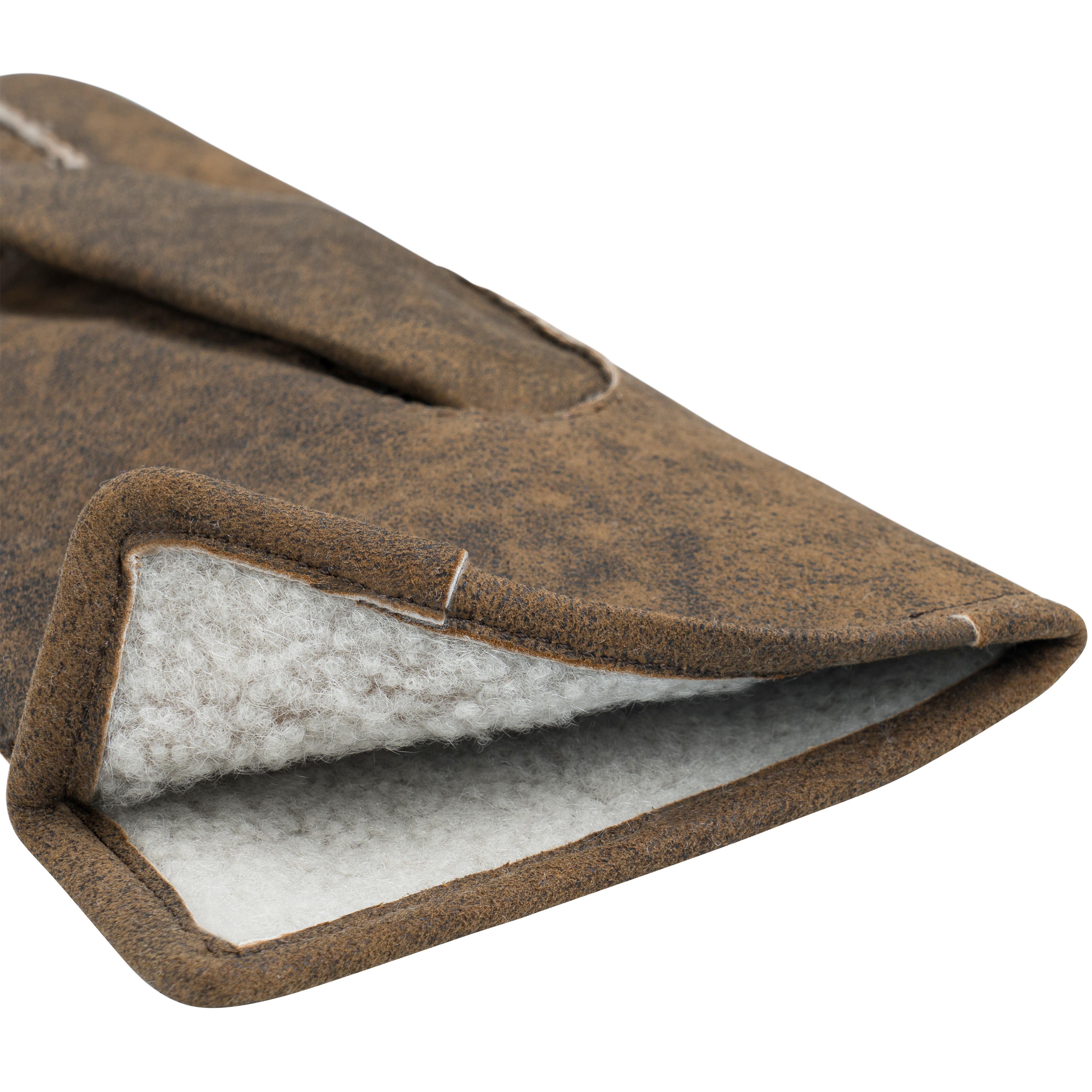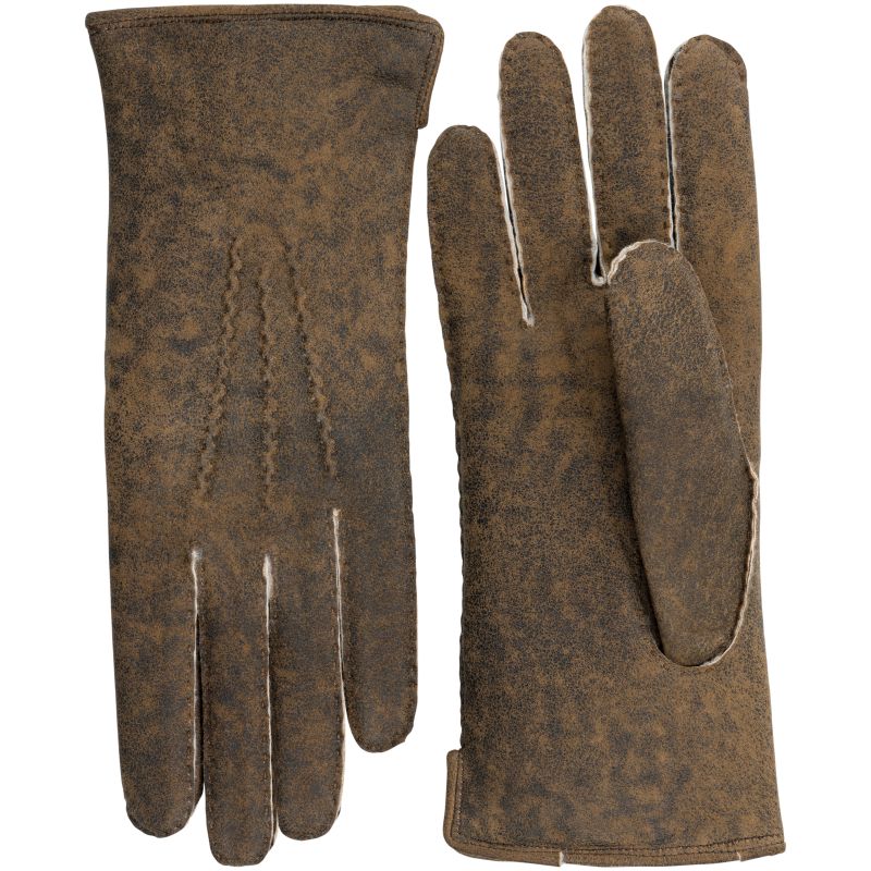 Das Curly Lammfell zeichnet sich durch seine feine, lockige Struktur aus, die für hervorragende Wärmespeicherung sorgt – noch effektiver als herkömmliches Lammfell. Durch das feine Finish auf dem Veloursleder entsteht eine leicht glatte Oberfläche, die dem Handschuh eine elegante, sportliche Note verleiht. Das Antik-Finish des Leders betont zusätzlich den charakteristischen Look.