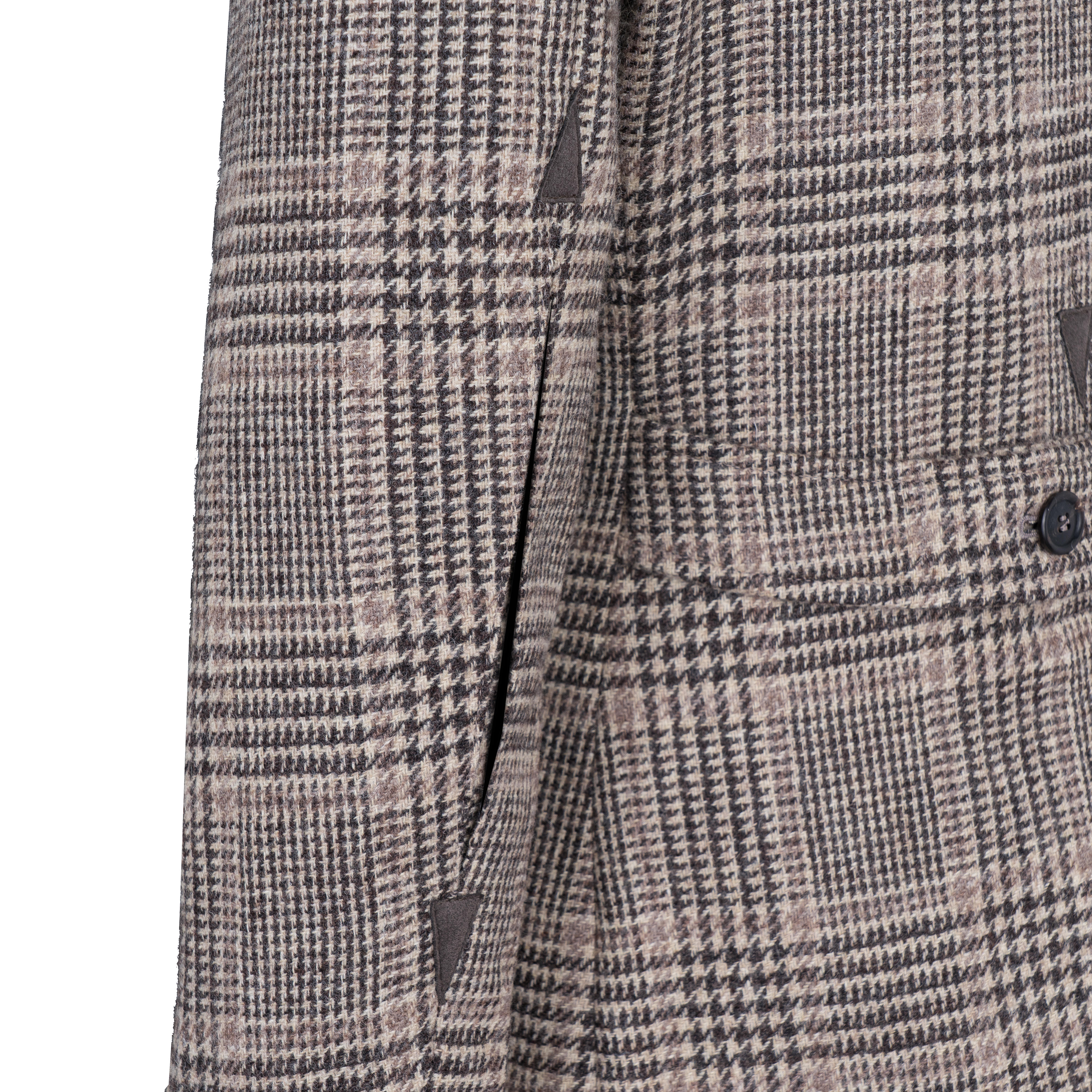 Praktische wie stilvolle Details machen die »Hampshire« zu einer funktionalen Outdoorjacke mit hohem Anspruch an Ästhetik. Die Enden der Bewegungsfalte im Rücken sowie die Ärmelsäume und die Eingriffe der aufgesetzten Blasebalgtaschen sind mit Alcantara verstärkt – ein ebenso hochwertiges wie langlebiges Detail. Schräge, paspelierte Billett- und Pattentaschen fügen sich harmonisch ins Gesamtbild und bieten zugleich sicheren Platz für unverzichtbare Kleinigkeiten. Ein verstellbarer Riegel im Rückenteil ermöglicht es, die Taillenweite individuell anzupassen. Geschlossen wird die Jacke mit einem verdeckten Reißverschluss und einer klassischen Knopfleiste.