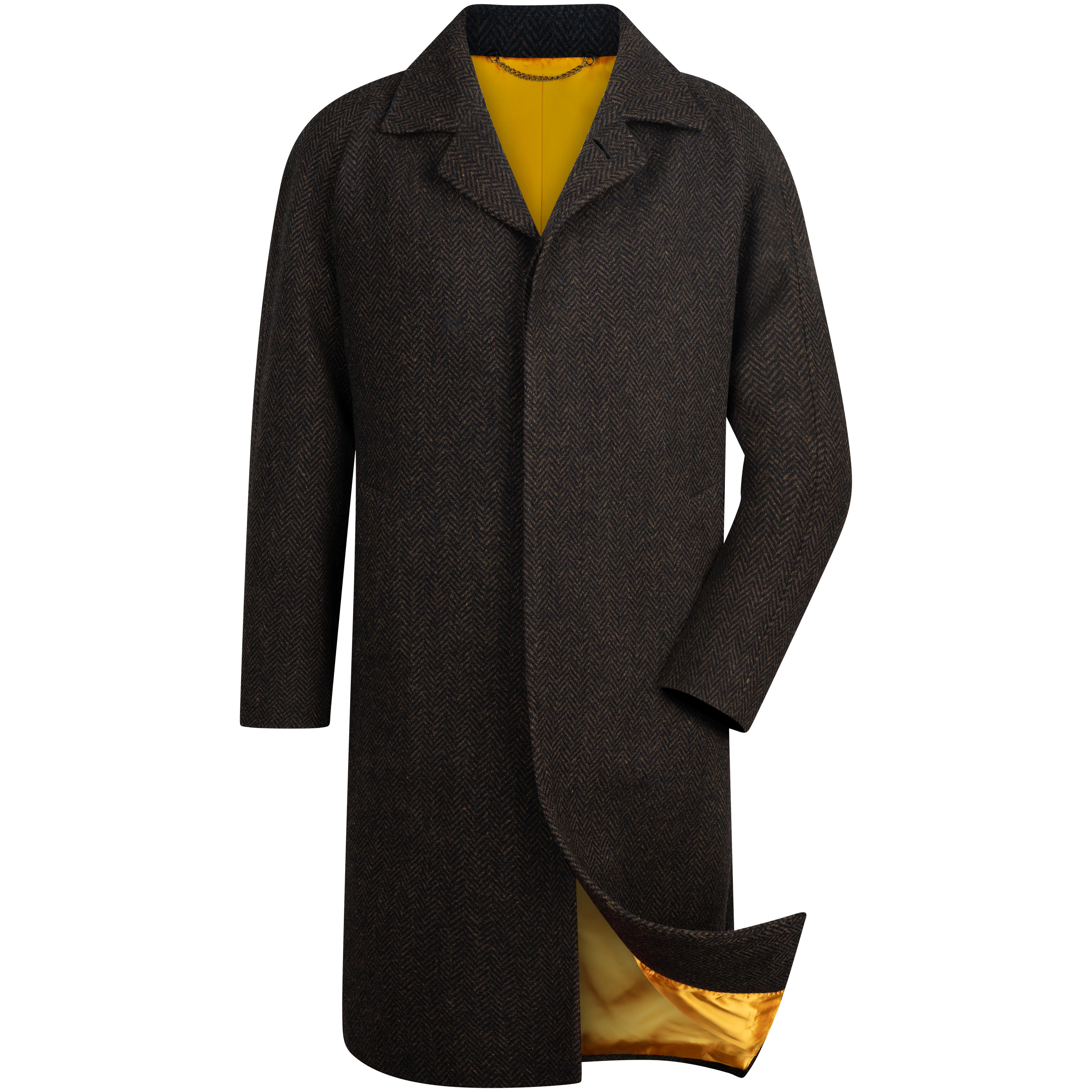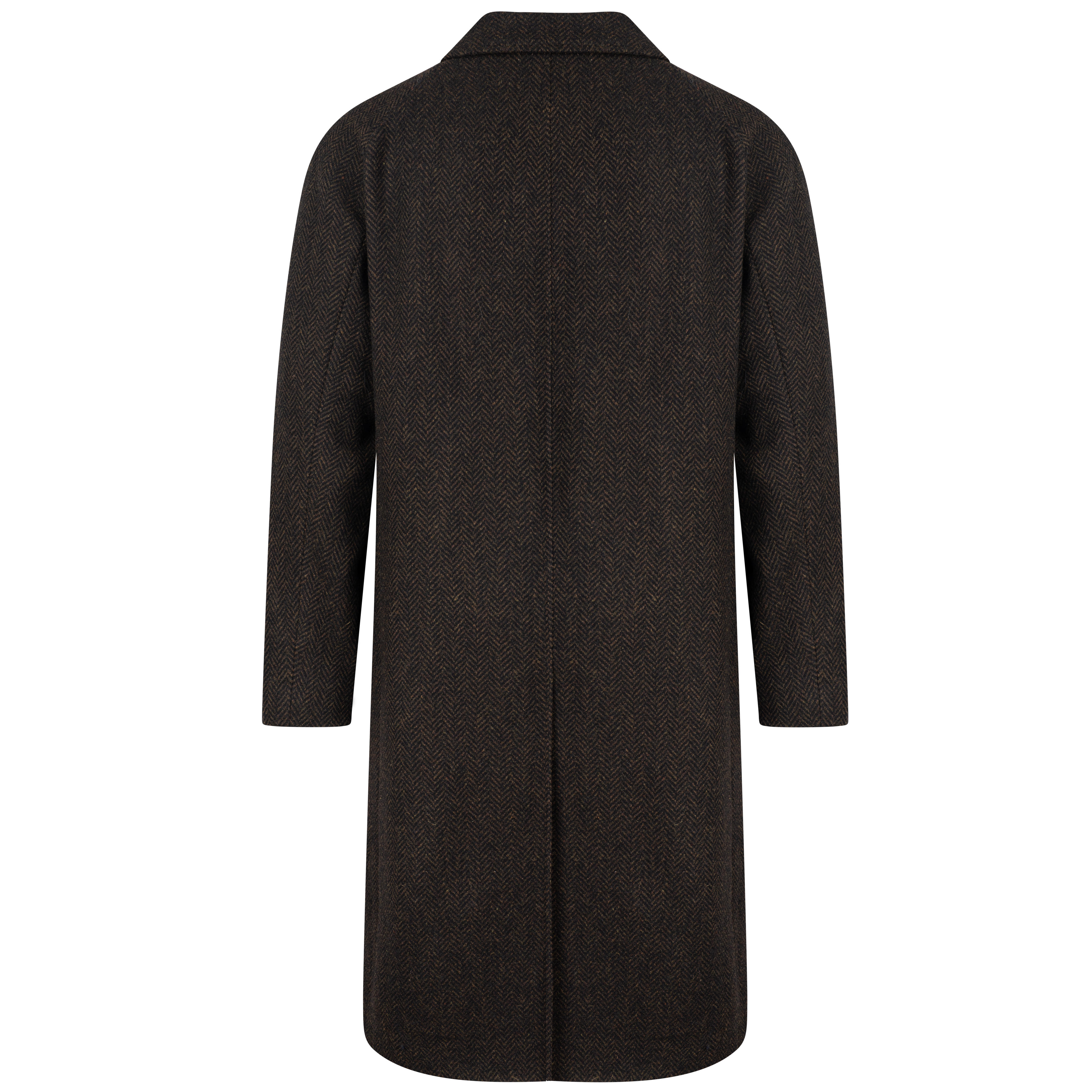 Der Mantel besticht durch eine verdeckte Knopfleiste, geräumige Einschubtaschen und einen Rückenschlitz, der für zusätzlichen Tragekomfort sorgt. Im Inneren bieten zwei großzügige Innentaschen sowie eine zusätzliche Paspeltasche ausreichend Stauraum. Das markante amberfarbene Viskose-Duchesse-Innenfutter unterstreicht die erstklassige Verarbeitung bis ins kleinste Detail. Dank des hochwertigen Tweeds überzeugt der Mantel nicht nur durch seine edle Haptik, sondern hält auch bei kühlen Temperaturen angenehm warm. Ein stilvolles Kleidungsstück, das zeitlose Eleganz mit höchstem Tragekomfort verbindet.