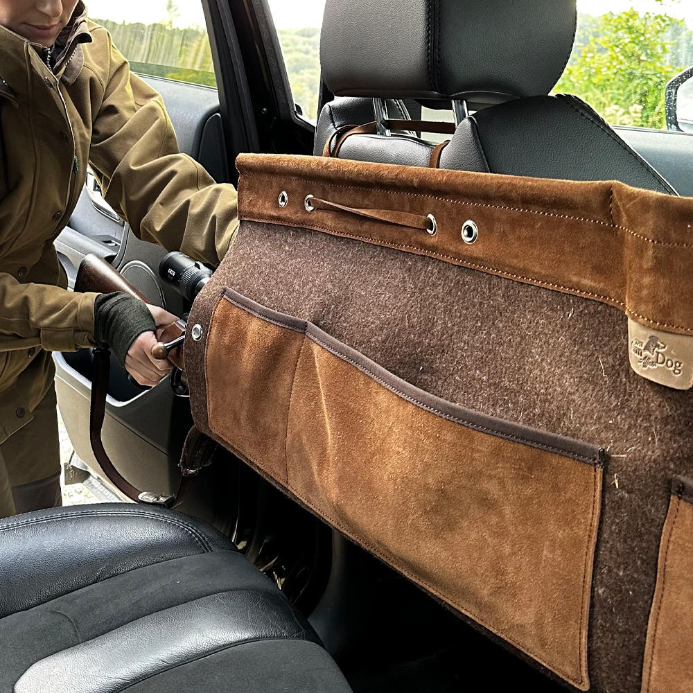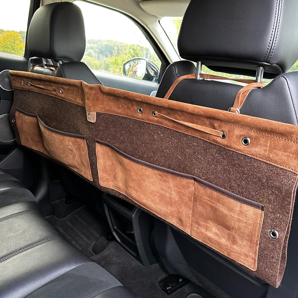 Das Futteral überzeugt durch seine leichte Konstruktion und benutzerfreundliche Handhabung. Herausnehmbare Rundstäbe an den Befestigungspunkten der Kopfstützen sorgen für zusätzliche Stabilität, während verstellbare Befestigungsbänder aus Leder die Anbringung an den Kopfstützen der Vordersitze besonders einfach machen. Das Futteral hängt unauffällig und gut geschützt hinter den Sitzen und lässt keine neugierigen Blicke zu, sodass Ihre Waffe stets sicher verwahrt ist.