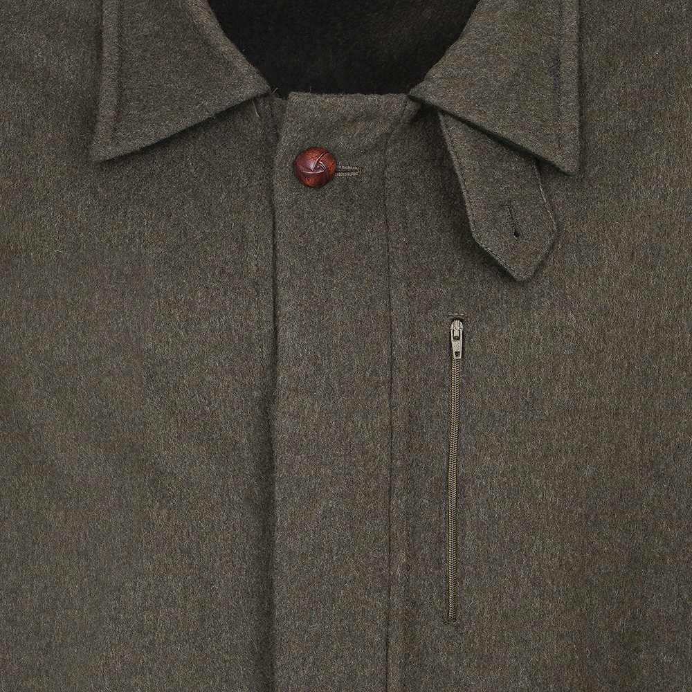 Der großzügig geschnittene Umlegekragen mit untergeknöpftem Sturmriegel schützt den Nacken zuverlässig vor Wind und Wetter. Die verdeckt gearbeitete Knopfleiste ist absolut geräuschlos; der obere durchgeknöpfte Knopf aus Leder verhindert, dass beim Bestoßen ein metallischer Klang verursacht wird. Praktische Schubtaschen, eine Reißverschlusstasche außen sowie eine verschließbare Innentasche bieten sicheren Stauraum für wichtige Jagdutensilien.