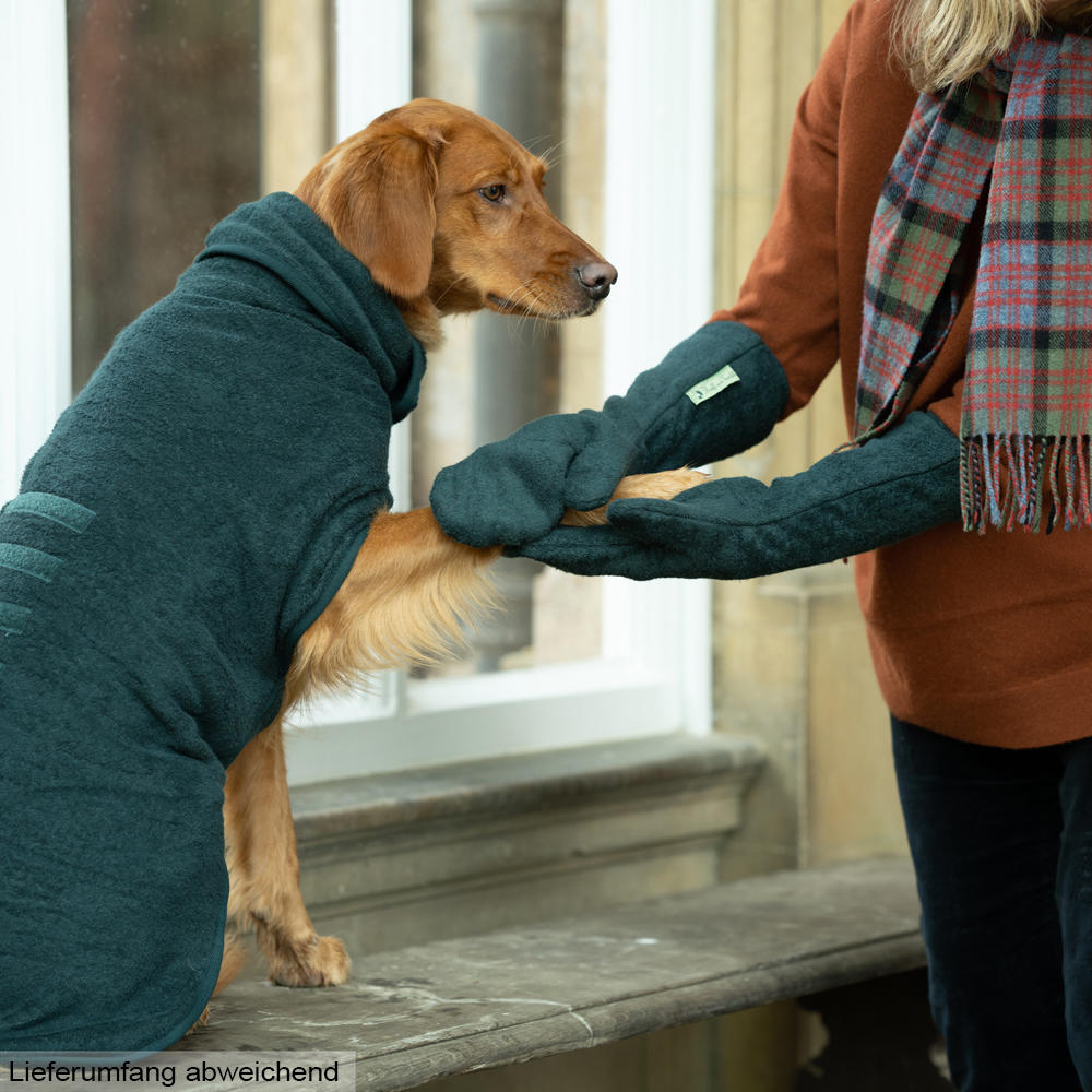 Ihre exzellente Qualität und extreme Saugfähigkeit unterscheiden die dicken, weichen Baumwollfrottee-Trocknungstücher von Ruff and Tumble von den Produkten anderer Hersteller. Alles, was bei Ruff and Tumble hergestellt wird, ist mit Blick auf Hunde und ihre Besitzer konzipiert. Die Trockenmäntel und -handschuhe, Hundebetten und Sofaüberwürfe sind die ultimative Lösung für den Umgang mit nassen Hunden. Das Ruff and Tumble-Sortiment wird mit Sorgfalt entwickelt und aus hochwertigem Baumwollfrottee hergestellt - einfach unverzichtbar für Hundehalter, die es edel und dabei praktisch mögen.
